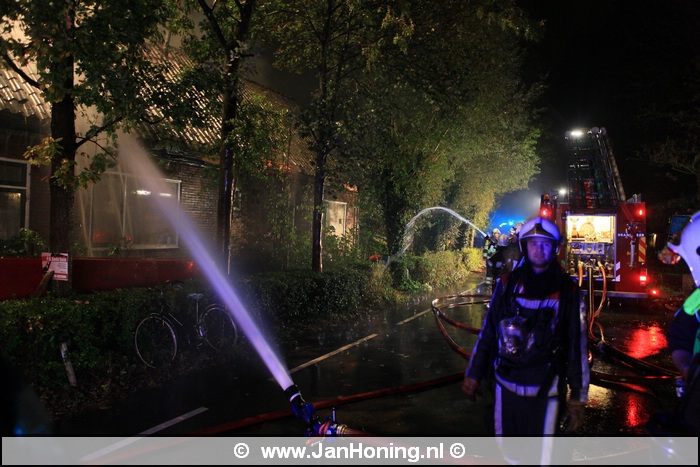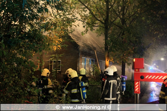 De schade aan de woning is groot. De brandweer heeft met o.a. een hoogwerker het vuur bestreden.