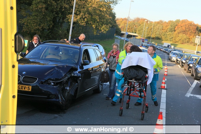 Woensdag aan het eind van de middag heeft eer een kop staart botsing plaats gevonden op de afrit van de A1 van Naarden. Een Auto reed via de vluchtstrook naar de verkeerslichten toe.
