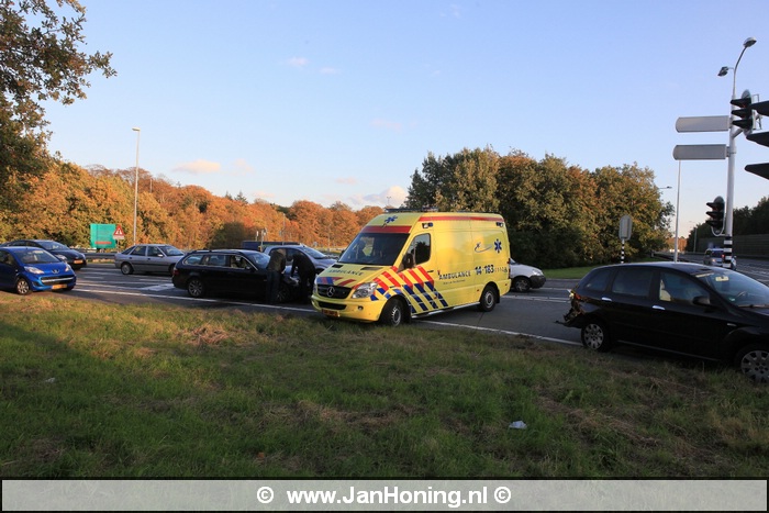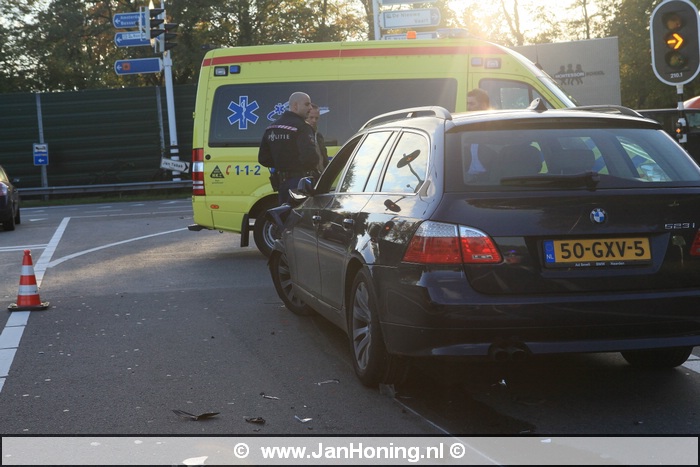 Later moest de brandweer van Naarden het wegdek schoonspuiten. Beide auto zijn afgevoerd.