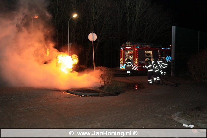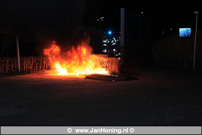 De brandweer van Huizen moest vrijdagavond uitrukken voor een buitenbrand op de carpoolplaats op de Amersfoortsestraatweg aan het eind van de Huizerweg.