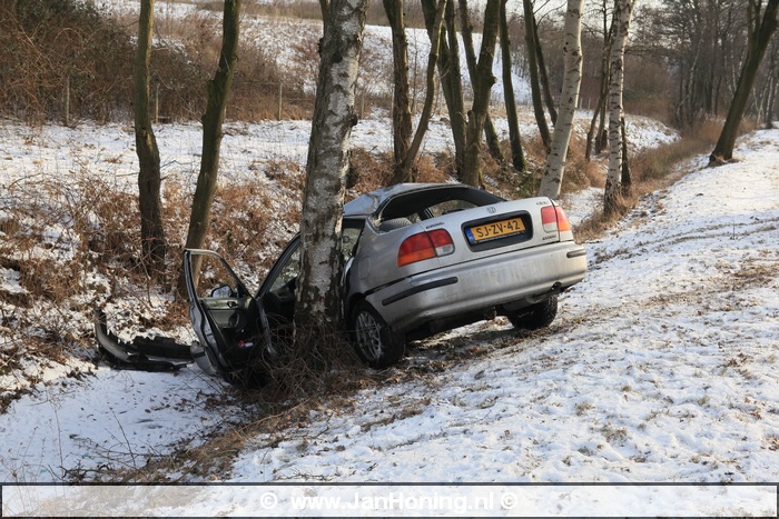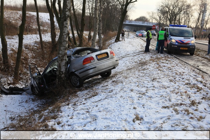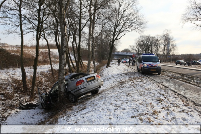 Bij een eenzijdig ongeval op de Naarderweg in Bussum is een persoon en kind licht gewond geraakt. De auto raakte ter hoogte van de Natuurbrug door nog onbekende rede in de slib. Het voertuig kwam tot stilstand tegen een boom en is waarschijnlijk total-Loss. De personen werden opgevangen in een politiebus waar ze onderzocht werden door de broeders.