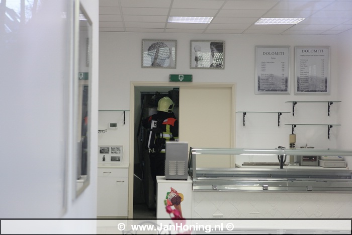 (17-02-2012) Bussum - Bij een verhuizing van de IJssalon in Bussum is er koelgas (freon) vrijgekomen.