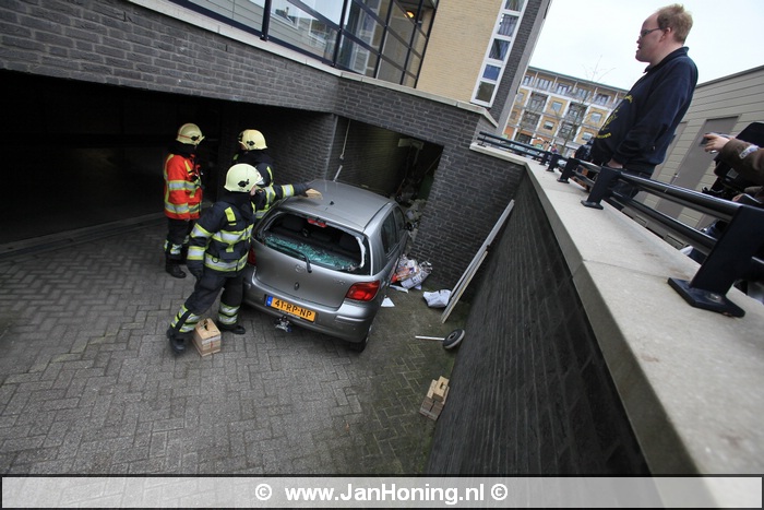 Bij een eenzijdig ongeval op de archipelplein in een personenwagen vast komen te zitten in de berging van de Flats. De hulpdiensten hebben de bestuurster uit de wagen gehaald. Deze is ter plaatse nagekeken door de broeders. De wagen liep flinke schade op.