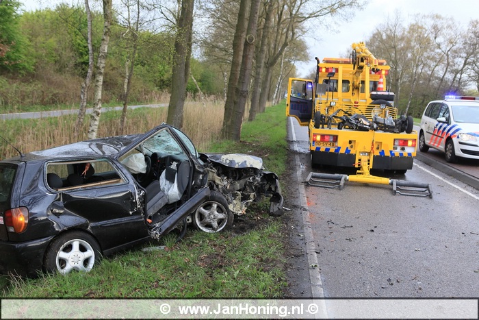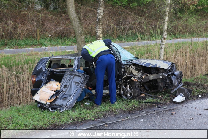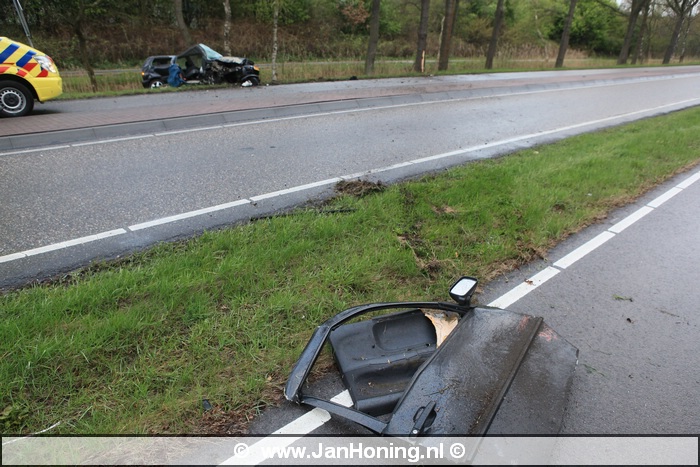De bestuurder was zondagmorgen rond zeven uur van de weg geraakt en met de voorkant tegen een boom geknald. Vervolgens is de wagen om zijn as gedraaid daarbij is de bestuurdersportier van de wagen gerukt en aan de overkant van de weg terecht gekomen. De bestuurder is zelf uit gestapt en heeft de hulpdiensten gebeld. De broeders van de ambulancewagen hebben de bestuurder voor controle meegenomen naar het ziekenhuis. De wagen is afgesleept door een berger, deze is total-loss.