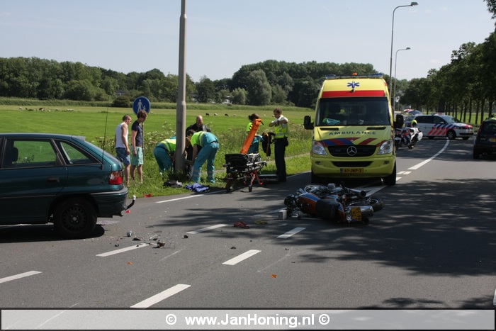 (12-08-2012) Weesp - Bij een aanrijding op de Gooilandseweg tussen een motor en auto is de motorrijder gewond meegenomen met de ambulance. Hoe het ongeval heeft kunnen gebeuren is nog niet duidelijk. Vorige week gebeurde er op de zelfde plek een ernstig ongeval met dodelijke afloop. De weg is tijdelijk afgesloten voor al het verkeer.