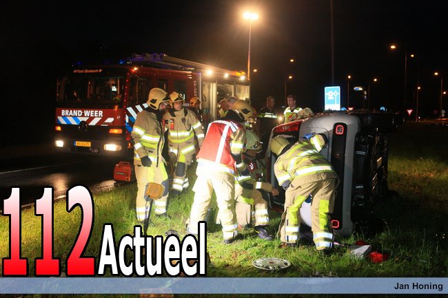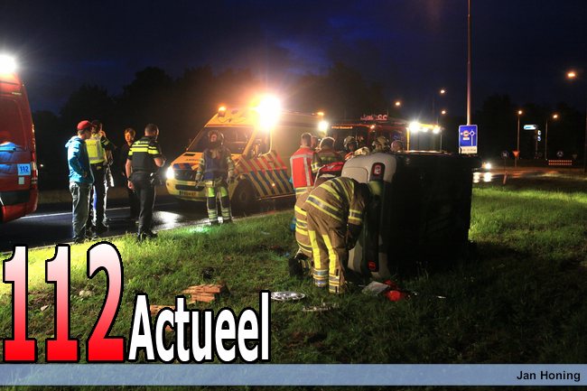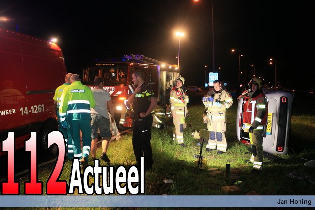 20-06-2015 Bussum - Auto op zijn kant (00007)